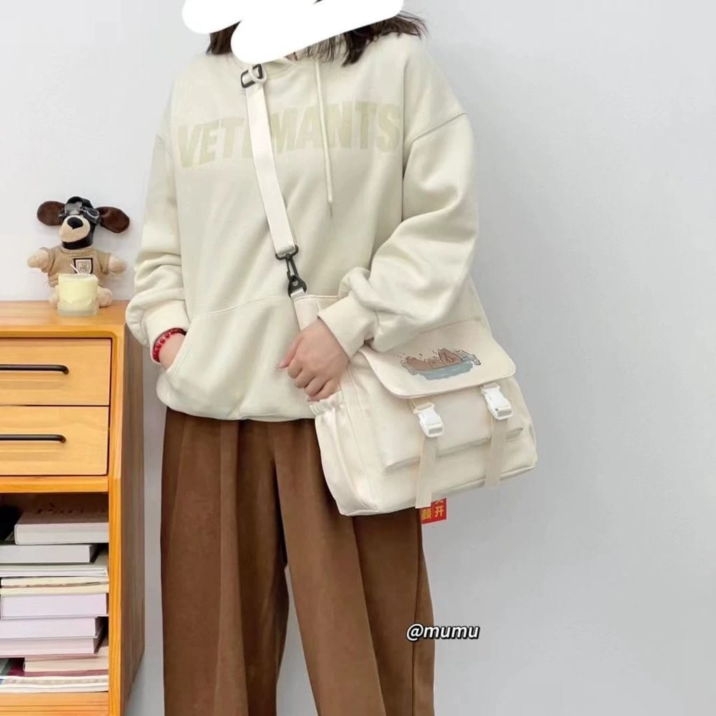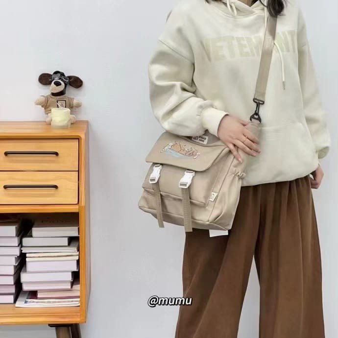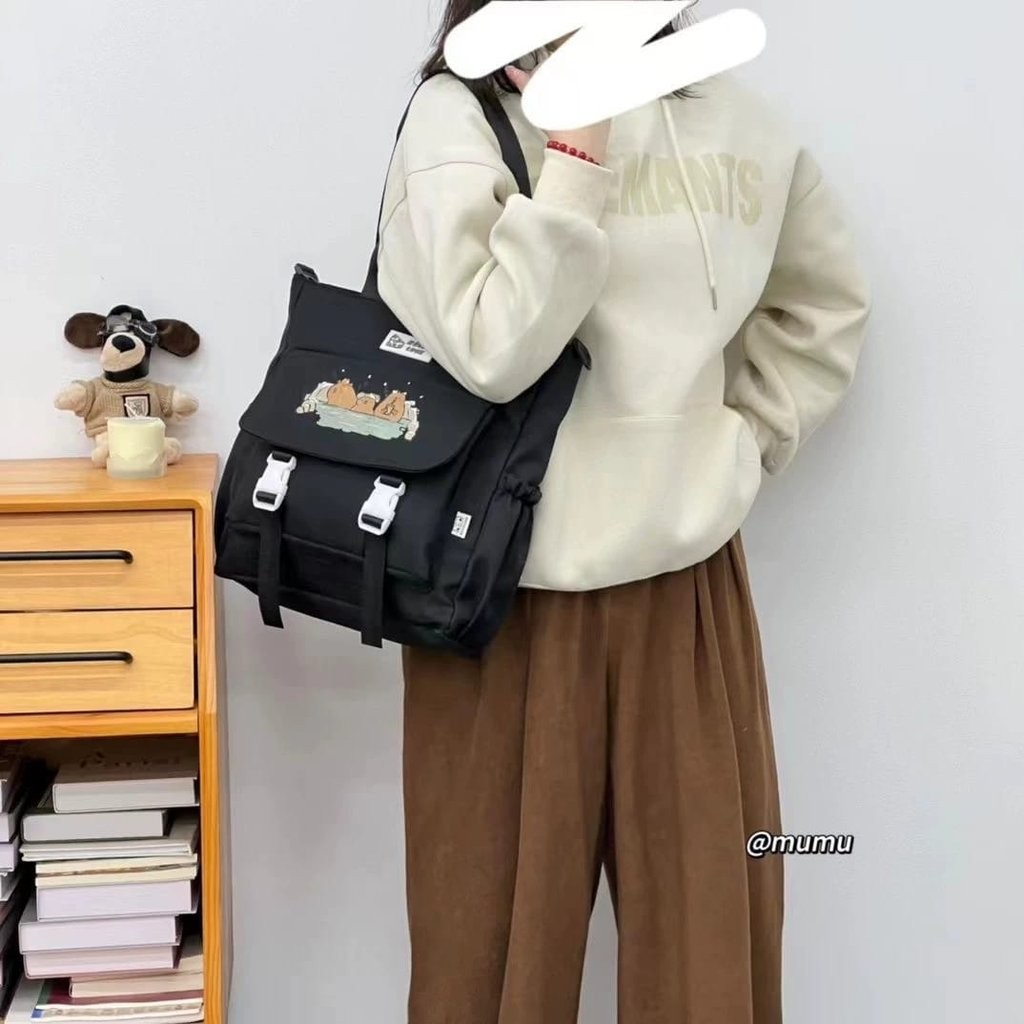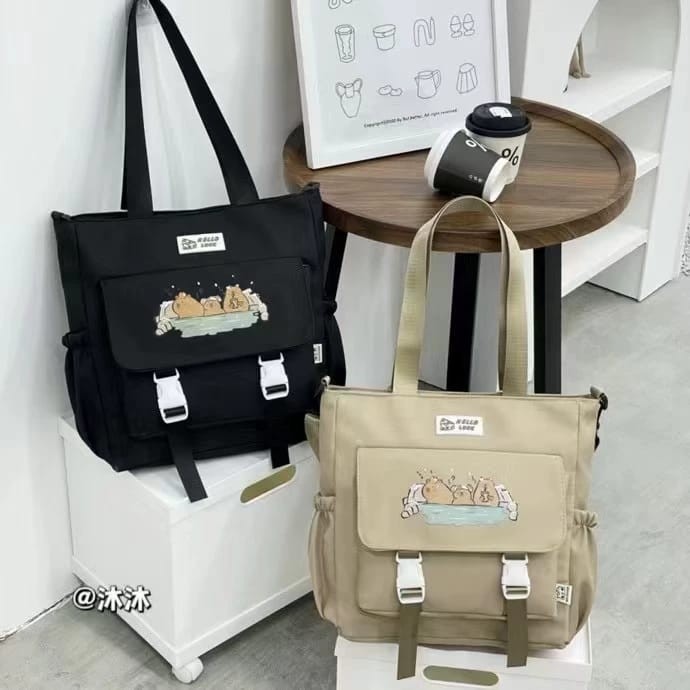 Elevate your everyday style with this charming cartoon cat messenger bag, featuring an adorable feline unwinding in a whimsical bathtub scene. Crafted for cat lovers and fans of quirky fashion, this spacious bag offers plenty of room for your daily must-haves and is designed with adjustable straps and reliable buckles for comfort and security all day long. Choose from classic black or elegant beige to suit your look, and enjoy a playful accessory that stands out in any crowd. Dimensions: 12" x 9" x 4"—perfect for books, tablets, and more.