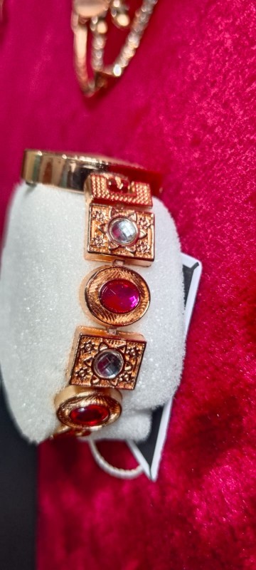 Elevate your style with this stunning gold analog watch and bracelet set. The luxurious wristwatch features a sparkling display of brilliant stones and an enchanting cosmic star motif, seamlessly blending sophistication with celestial charm. Paired perfectly, the gold bracelet showcases a vibrant blue floral design, adding a touch of elegance and color to your wrist. Ideal for both special occasions and everyday glamour, this exclusive set makes an unforgettable gift. The watch dial measures approximately 34mm, with an adjustable chain for a comfortable fit, and both pieces shine in radiant gold with gleaming blue accents.