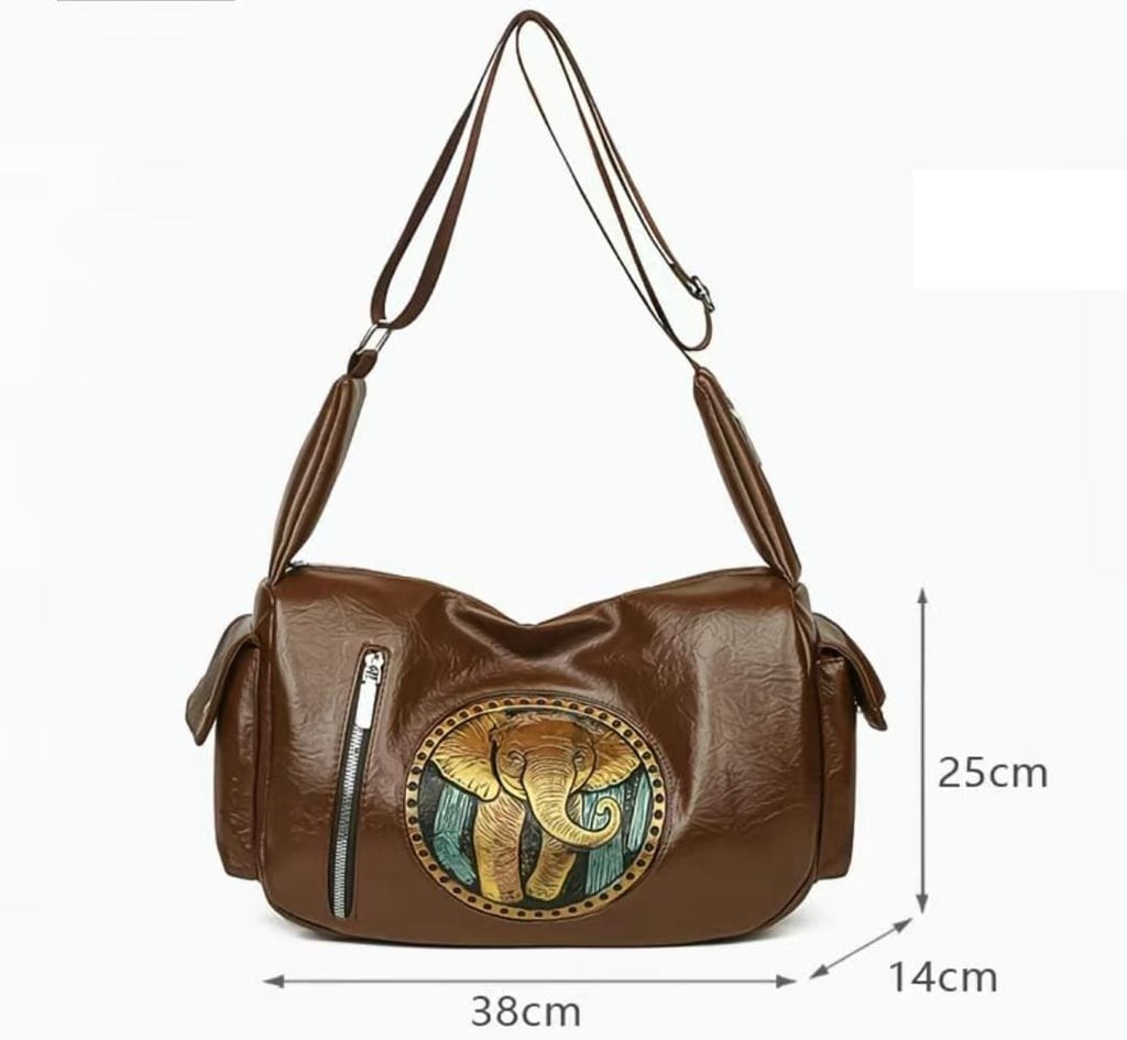 Elevate your everyday style with this sophisticated black shoulder bag, featuring a vibrant embroidered elephant patch that adds a touch of artistry and charm. Crafted with sturdy shoulder straps for all-day comfort and a spacious front zipper pocket for easy access to your essentials, this bag seamlessly combines functionality with eye-catching design. Ideal for daily use, the generous size accommodates your wallet, phone, and more while the timeless black color matches any outfit. Treat yourself or gift someone special to this unique statement piece.