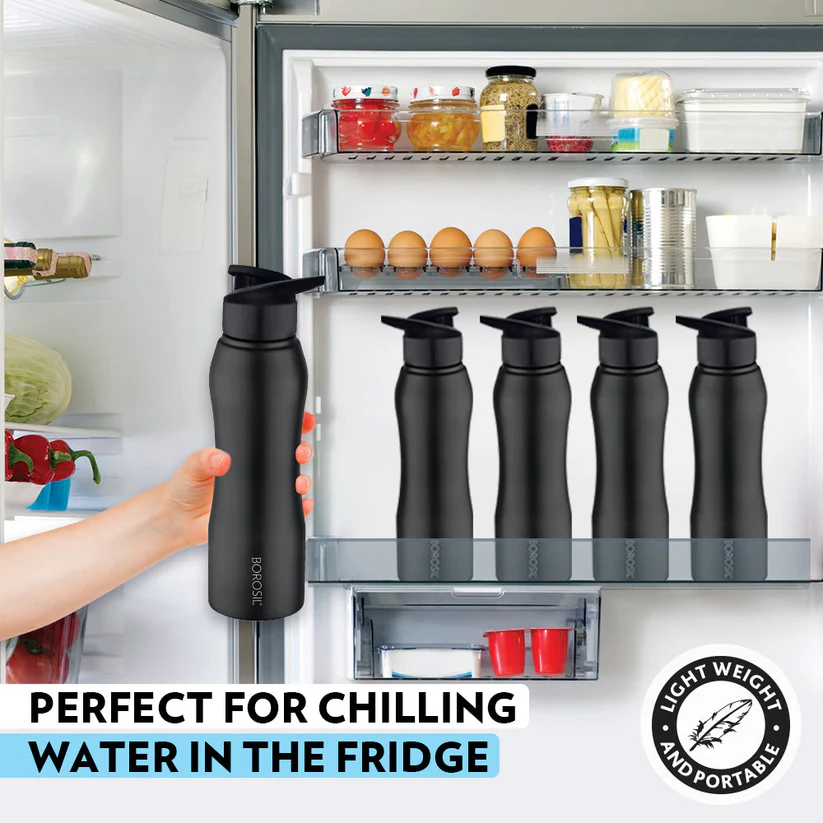 Convenient size fits in the side pocket of school, trekking or office bag, car bottle holder etcOdour free and leak proof and easy to pourFlip top lidSuitable for fridge useSuitable for cycling, camping, hiking and other outdoor sports