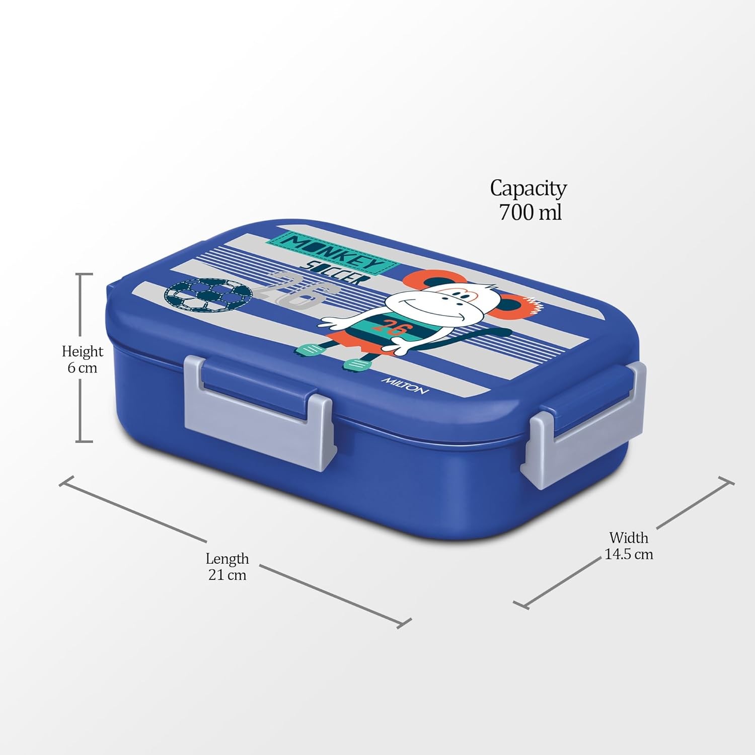 • Color:  BLUE; Material; Inner Stainless Steel, Outer Plastic; Package Content: 1 - Piece Flatmate Tiffin Box (700 ml); Dimension in cms (L x W x H): 21 x 14.5 x 6
