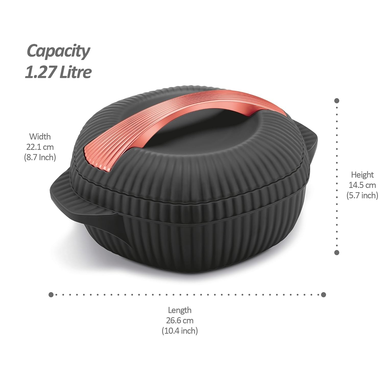 • PU Insulated Inner stainless-steel casserole keeps food hot and fresh for hours. Unique design, elegant shape and premium matt finish adds a hint of royalty to your dining and enhances your dining décorum and thus makes it a must-have casserole for your home.