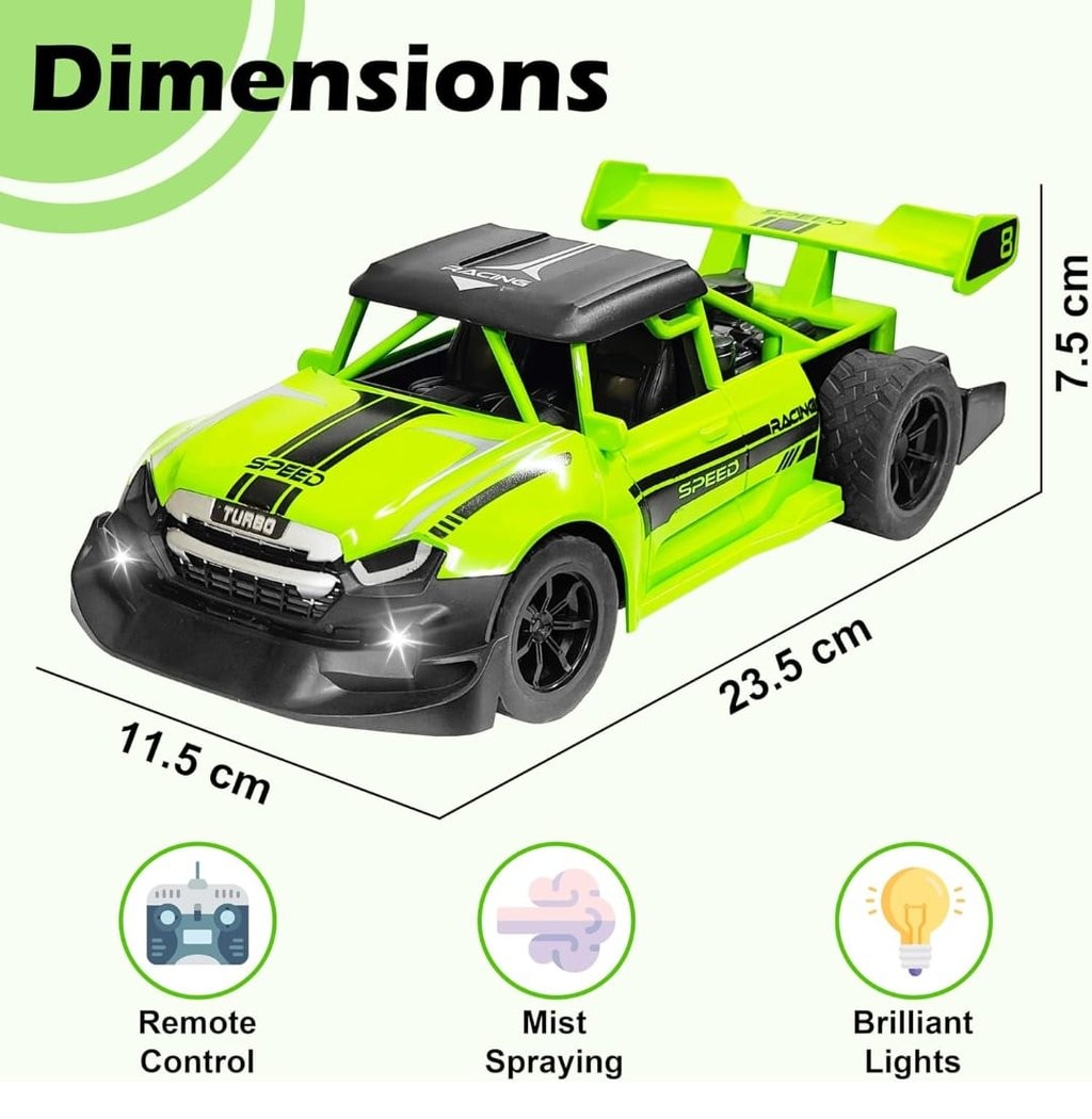 Experience high-speed thrills with our remote control turbo racing car! Finished in a bold red color, this sleek vehicle features an aerodynamic design for maximum performance, complete with intricate detailing that mimics real race cars. The set includes an easy-to-use remote controller, USB charging cable, long-lasting rechargeable battery, and a realistic smoke effect device to bring every race to life. Perfect for kids and hobbyists alike, this racing car is designed for excitement, making it an unforgettable gift. Car size: approximately 12 inches long. Get ready to ignite your racing adventures!