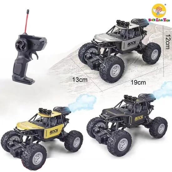 Experience the ultimate off-road adventure with our Rock Crawler Alloy Remote Control Car. Engineered with a durable alloy body and oversized, rugged wheels, this 1:18 scale RC car is built to conquer rough terrain with ease. Enjoy realistic driving action thanks to high-performance suspension and a powerful motor. The car comes equipped with a user-friendly remote controller, a rechargeable battery for extended playtime, and a unique water spray feature for added excitement. Available in striking colors and measuring approximately 27 cm in length, this RC rock crawler delivers endless fun for kids and adults alike.