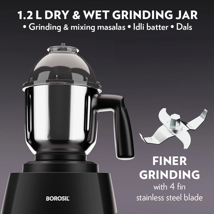 - 1.5 L blending jar with clip locking